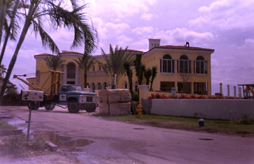 Specimen palms being installed on a beautiful south Florida mansion
